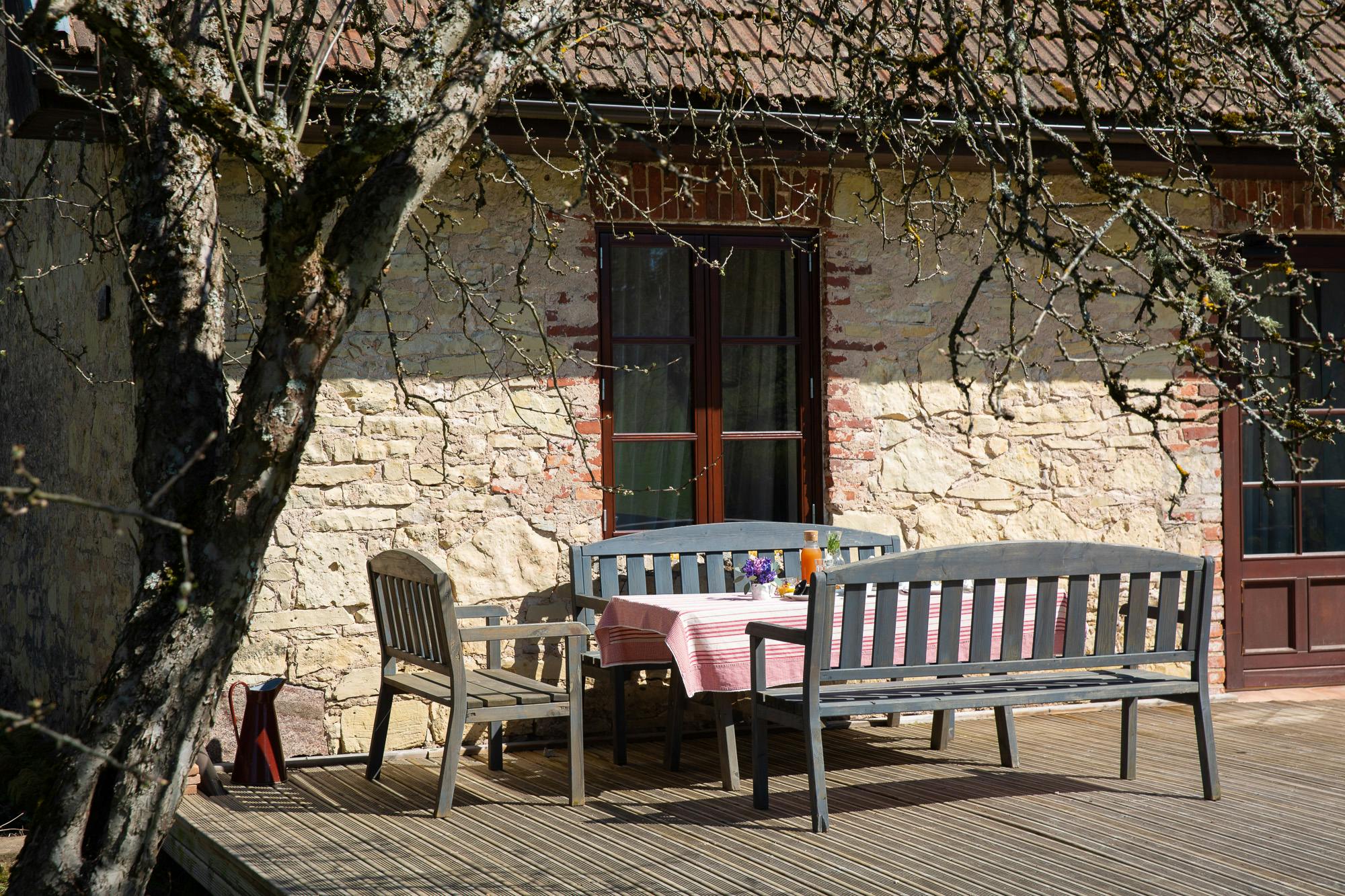 Утреннее кофе или поздний ужин на террасе. Живописный вид на яблоневый сад, а также уютный интерьер позволит Вам себя почувствовать свободно и насладиться отдыхом в поездке.